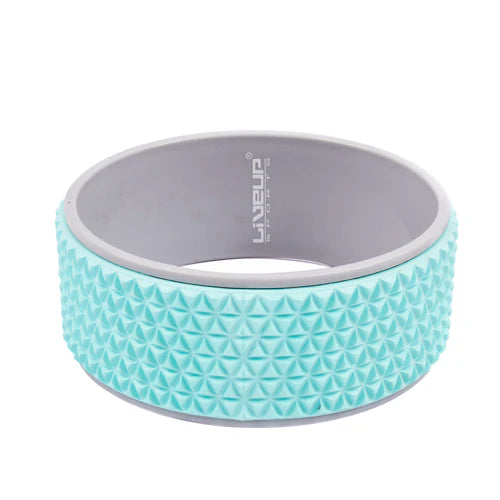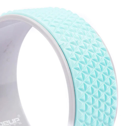 The yoga wheel is made of ABS plastic and covered with EVA foam. The surface of the ring has a relief coating for better muscle stimulation and spasm relief.