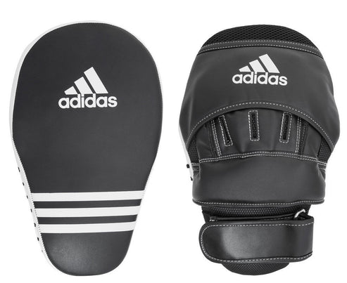 Adidas Training Curved Focus Mitts Long black. Professional boxing mitts, made of durable polyurethane with PU3G INNOVATION technology, a soft and durable material that looks like leather, and at the same time is insensitive to fluctuations in temperature and humidity of the material. Inside is made of EVA foam with AERO PUNCH technology, which provides optimal impact absorption. On the back of the glove, the palm is protected by a soft sphere. On the inside, Amara material is used with Coldwave technology, which has high wear resistance.