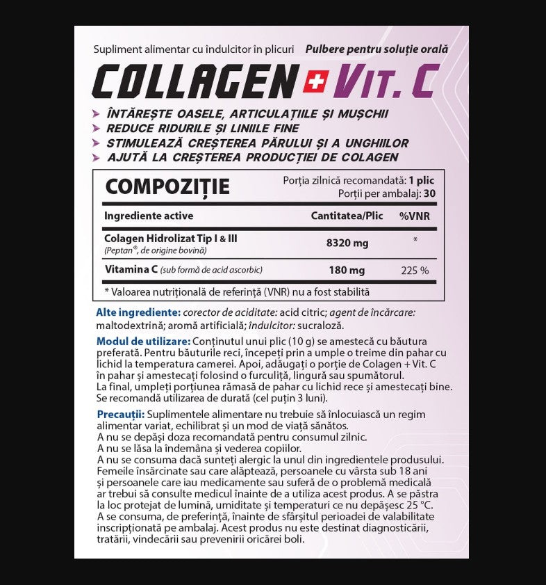 Am avut ocazia să folosesc un supliment pentru sănătatea articulațiilor și vreau să spun că am fost plăcut surprins de rezultatele obținute. De când îl folosesc, am observat o îmbunătățire semnificativă în mobilitatea mea, ceea ce este esențial având în vedere stilul meu de viață activ. Nu simt acele dureri care îmi limitau anterior activitățile zilnice, iar pielea pare mai radiantă. De asemenea, este foarte ușor de integrat în rutina de zi cu zi, pudra se dizolvă rapid în apă și gustul este acceptabil. Mi-ar plăcea să continui cu acest produs, deoarece pare să aducă beneficii pe mai multe planuri. Se simte că am mai multă energie și vitalitate, ceea ce mă motivează să mă țin de mișcare. Aș recomanda cu încredere oricui caută o soluție pentru susținerea articulațiilor.