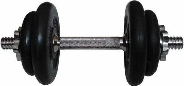 The set includes: 1 bar, 2 disks of 1.25 kg, 2 disks of 2.5 kg