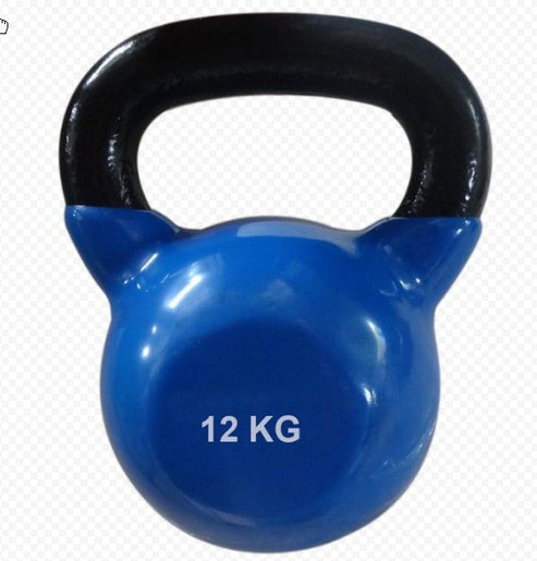Vinyl Coated Kettlebell 12kg. The surface is made of high-quality vinyl material, resistant to scratches and wear.