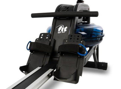 The resistance is created by the water element, which makes the movement natural, and the sound of the water creates the feeling of realistic rowing on water.