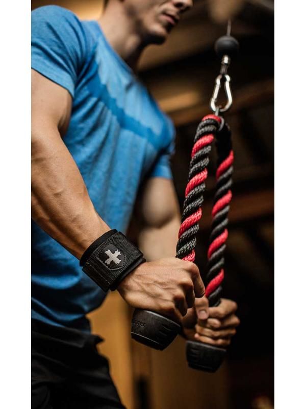 Flexible rope for triceps with double grip. An effective addition to training the muscles of the shoulder girdle, arms and abdominal press.