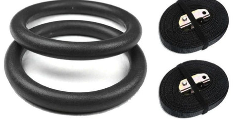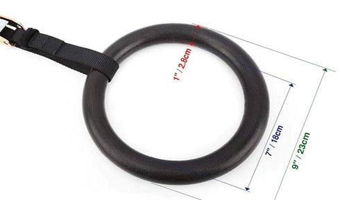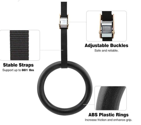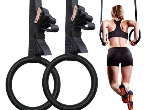 Gymnastic rings for the gym and home workouts. Made of 28 mm ABS plastic, designed for pull-ups, fitness, gym.
