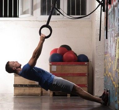 The set consists of: rings, suspension (sling) and carabiners for fastening.