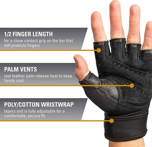 Pro Wristwrap Gloves - Fitness Gloves with Wristband, Recommended for Support wrists when training with heavy weights.