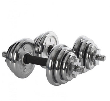 Set of chrome dumbbells, 10 kg each.