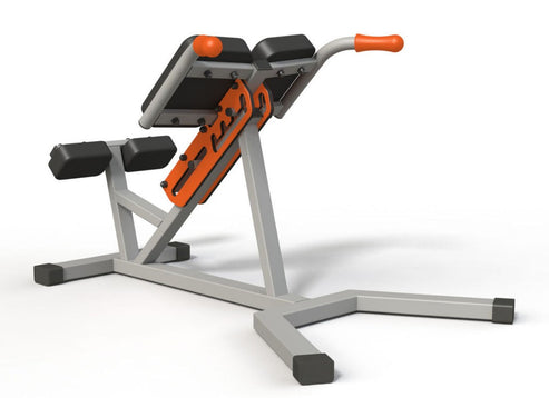 Скамья оснащена регулируемой опорой для ног, позволяющей удерживать спину в правильном положении. Для повышения эффективности рекомендуется выполнять гиперэкстензии под углом 45 градусов.