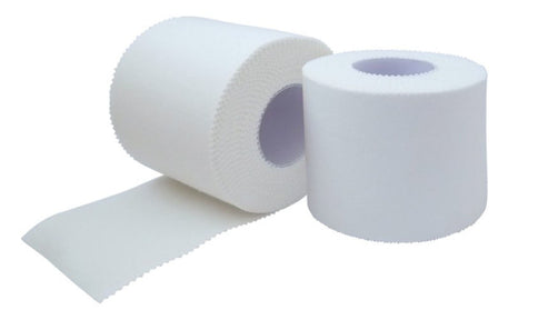 Non-elastic adhesive bandage applied to joint injury sites. Composition: 100% cotton. Ribbed edges for easy tearing, breathable and water-repellent (durable against sweat), easy to unroll. High adhesiveness.