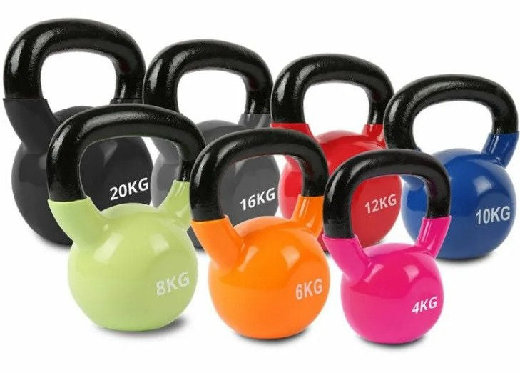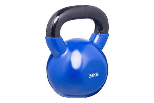 Vinyl coated kettlebells. The PVC coating of the kettlebell prevents damage to the training equipment and flooring, and provides stability.
