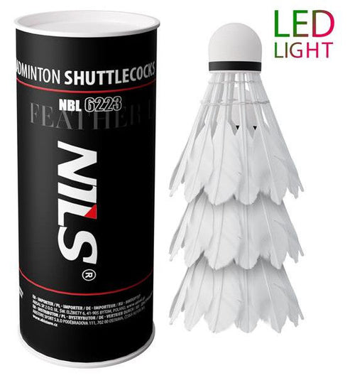 Badminton shuttlecocks, recommended for amateur and professional training. The basket is made of duck feathers, which provides greater control over the flight path and has aerodynamic properties that make the game more dynamic, and at the same time the player gains time for an accurate hit. NBL6223 has a built-in LED backlight, which allows you to play even at night. The lamp is lit by a switch located inside the basket on the base.