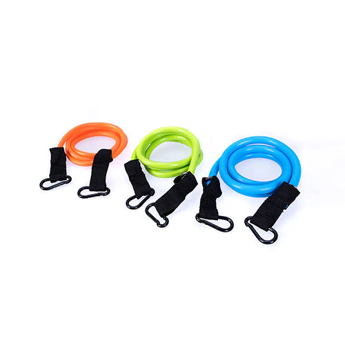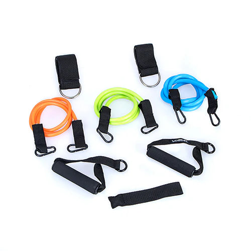 В набор входят 3 трубчатых эспандера с разными уровнями сопротивления, что позволяет выбрать оптимальную нагрузку для вашей тренировки. Каждый эспандер оснащен карабинами для крепления к ручкам, а также снабжен мягкими ручками и крепежами на липучке для фиксации на лодыжках. Кроме того, в комплект входит крепеж на шест и удобная сумочка для хранения и транспортировки.