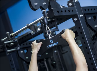 Эта рукоятка предназначена для выполнения разгибаний трицепса вниз и может использоваться с различными тренажёрами и силовым оборудованием. В основе конструкции находится прочный стальной сердечник, а сверху нанесено высококачественное чёрное ПВХ-покрытие. Оно делает аксессуар долговечным, устойчивым к износу, коррозии и ржавчине, а также придаёт удобную текстурированную поверхность для более уверенного хвата.