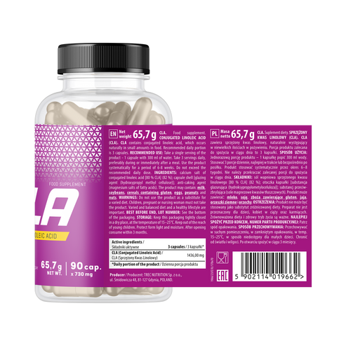 CLA - это изомер линолевой кислоты, относящийся к группе омега-6-полиненасыщенных кислот, которая естественным образом содержится в молоке, баранине и говядине. Жиросжигатель работает путём блокирования фермента протеин-липазы в жировой ткани, что ограничивает её рост и способствует активному сжиганию жира. Это натуральное вещество было специально выбрано спортсменами благодаря своей эффективности и безопасности. CLA помогает вашему организму более эффективно использовать накопленные жиры в качестве источника энергии.