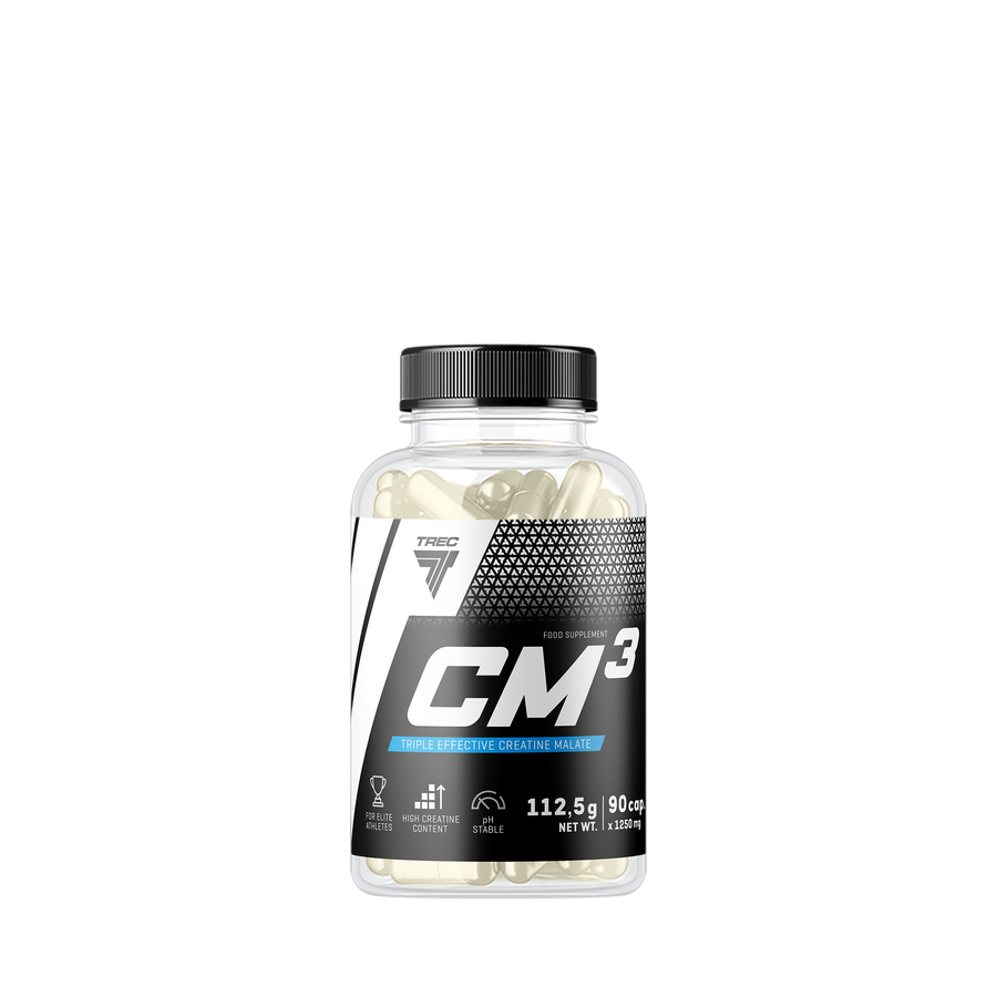 CM3 TRI CREATINE MALATE — это соединение, полученное из моногидрата креатина и яблочной кислоты. Эта комбинация уникальна тем, что сохраняет все положительные свойства моногидрата креатина. Креатин малат представляет собой улучшенную формулу креатина - к 3 молекулам креатина добавлена яблочная кислота, благодаря чему эта формула креатина обладает лучшей растворимостью и стабильностью. TRI CREATINE MALATE более устойчив к желудочной кислоте и предотвращает превращение моногидрата креатина в креатинин. Креатин повышает физическую работоспособность во время повторяющихся коротких высокоинтенсивных тренировок.