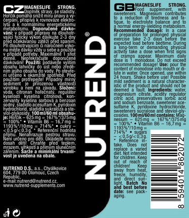 Состав: вода, цитрат магния, регулятор кислотности лимонная кислота, консерванты сорбиновая кислота и бензоат натрия, подсластитель ацесульфам K, гидрохлорид пиридоксина, подсластители сукралоза и стевиол-гликозиды.
