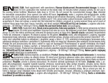 Состав: вода, L-аргинин-альфа-кетоглутарат, регулятор кислотности лимонная кислота, консервант сорбат калия, эмульсия черной смородины (ароматизаторы, красители E 122 - могут отрицательно влиять на активность и внимание у детей и E 133), консервант бензоат натрия, подсластители сукралоза и ацесульфам К.