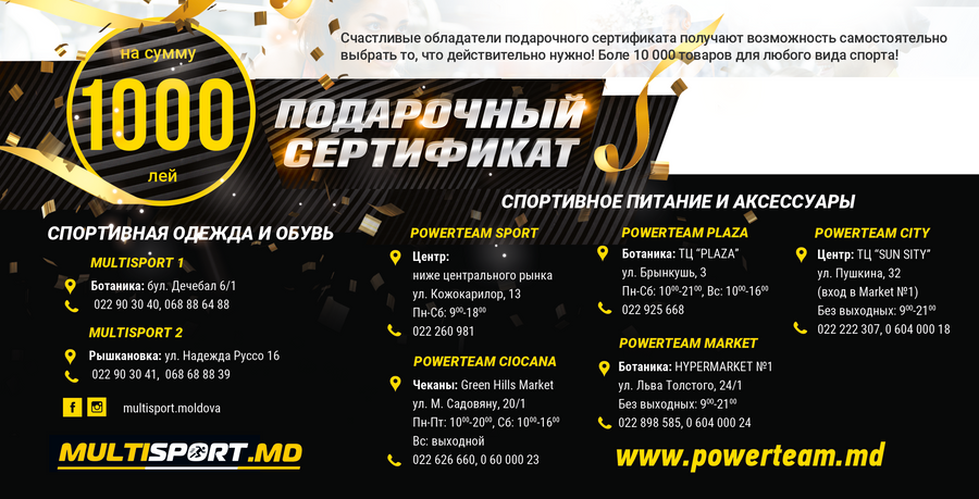 Счачтливый обладатель подарочного сертификата получает возможность самостоятельно выбрать то, что им действительно нужно! Более 2000 товаров спортитвного питания и аксессуаров для спорта и фитнеса!