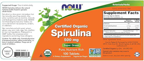 Спирулина содержит ряд натуральных питательных веществ, содержащихся в натуральных и органических продуктах. Спирулина - это сине-зеленые микроводоросли, которые содержат натуральные белки, а также другие питательные вещества, такие как витамины, минералы, гамма-линоленовую кислоту. Это органическая, вегетарианская, веганская добавка, без глютена, дрожжей, молочных продуктов, сои, орехов, рыбы, искусственных красителей.