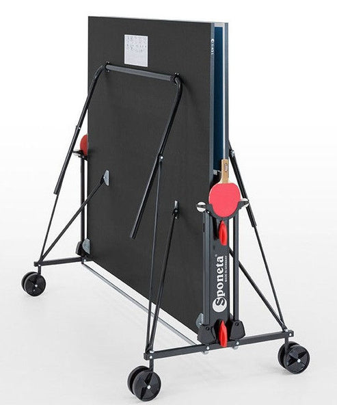 Для производства столов для настольного тенниса Sponeta использует специально изготовленную доску из древесной стружки. Наружные слои особенно тонкие и сильно сжаты, что обеспечивает оптимальное покрытие поверхности. Конструкция доски обеспечивает стабильную и точную по размеру поверхность из экологически чистого производства, сертифицированного PEFC. На заводе эта поверхность обрабатывается в три повторяющихся производственных этапа путем нанесения нескольких слоев грунтовки, краски и лака.