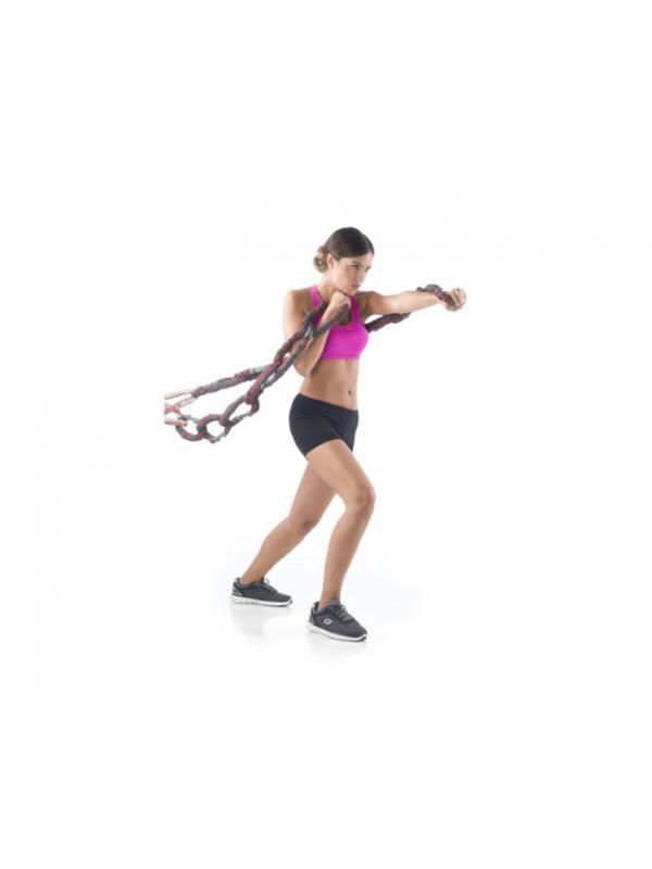 Цепочка из 14 эластичных колец, которая позволяет выполнять более 100 различных упражнений с различным уровнем сопротивления, что соответствует конкретным потребностям каждого пользователя.
