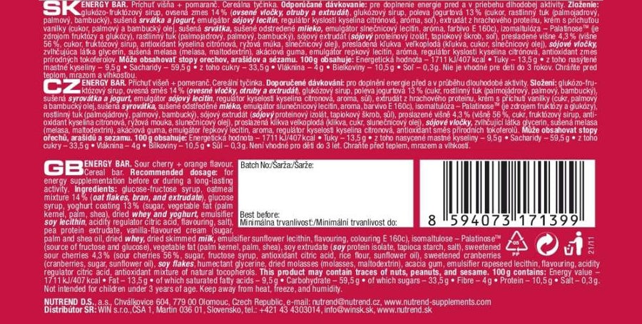 ENERGY BAR este o sursă excelentă de energie ușor accesibilă pe care poteți folosi pentru a reface energie înainte și în timpul antrenamentelor de lungă durată.