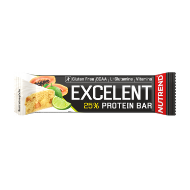 - Excelent este un excelent baton proteic cu umplutură dublă, acoperit cu ciocolată cu lapte sau iaurt.