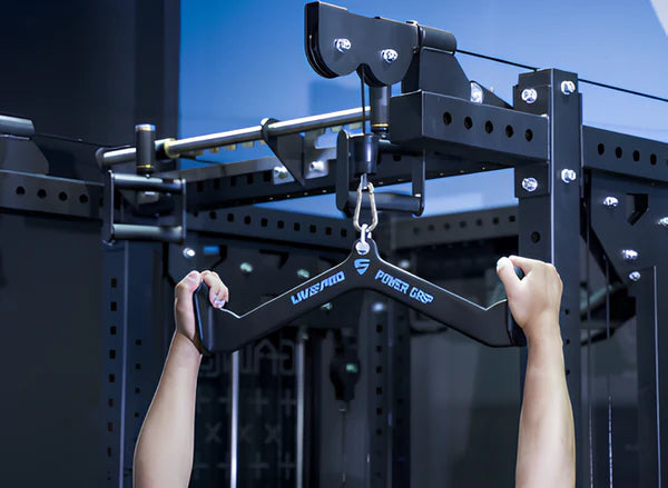 Această mâner este concepută pentru efectuarea de tracțiuni cu prindere largă și este compatibilă cu diverse aparate de antrenament și echipamente de forță. Construcția este realizată pe baza unui miez robust din oțel și completată cu un înveliș exterior din PVC negru de calitate. Această combinație de materiale asigură durabilitate, rezistență la coroziune și rugină, precum și o rezistență sporită la uzură.