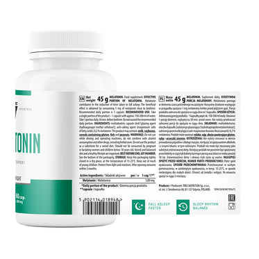 Melatonina | 1,00 mg | Maltodextrină, Gelatină, Dioxid de titan, Săruri de magneziu ale acizilor grași | Gelatină |