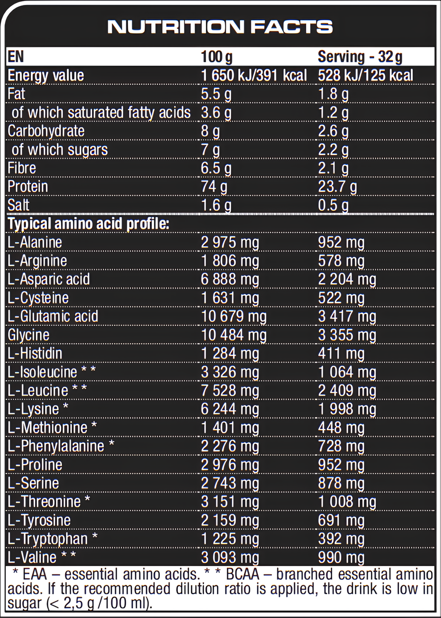 Se amestecă porție de 32 g (3/4 din măsură) în 250 ml apă, consumați 1-3 porții pe zi, între mese în dependență de necesarul zilnic de proteine.